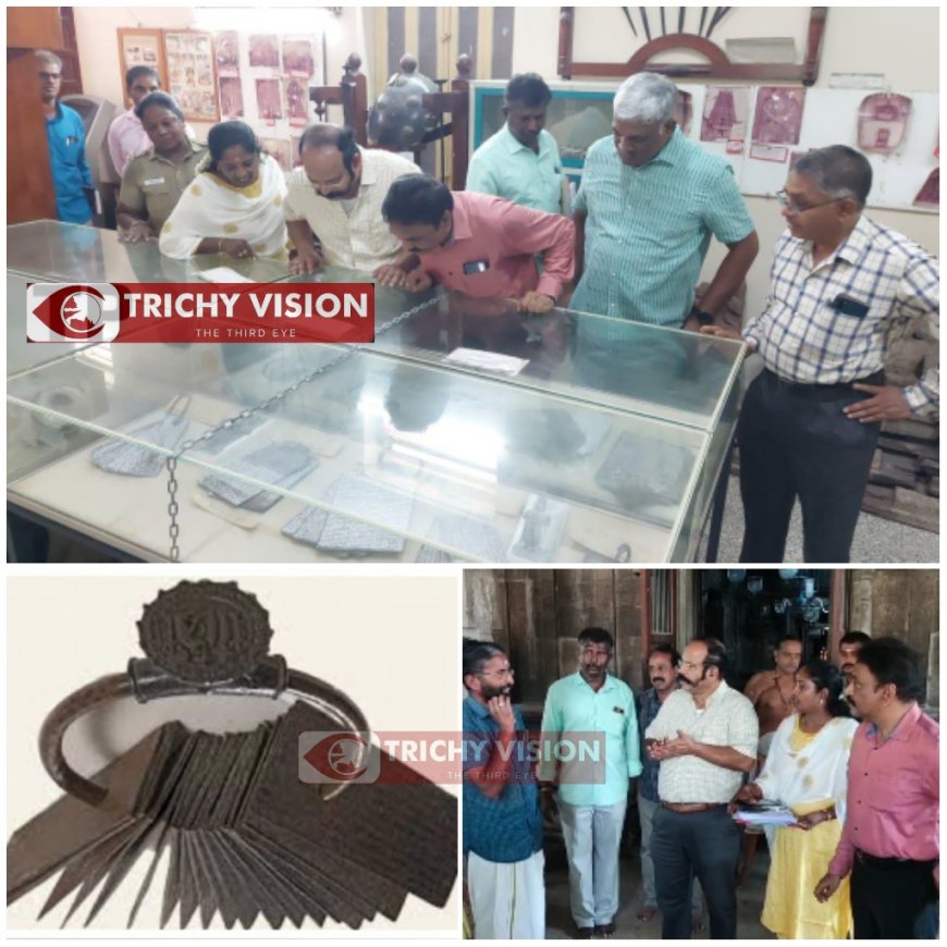 மேலும் செப்பேடுகள் பற்றிய தகவலை அறிவிக்கும்பொருட்டு அறிவிப்பு போஸ்டர்களை சிலை கடத்தல் தடுப்பு பிரிவு போலீசார் லால்குடி சுற்றுவட்டார பகுதி முழுவதும் ஒட்டினர். இந்நிலையில் அன்பில் கோவில் ஸ்ரீரங்கம் கோவிலின் உப கோயிலாக உள்ளதால் இங்கு செப்பு பட்டயம் உள்ளதா கூடுதல் தகவல் ஏதேனும் கோவில் நிர்வாகத்திடம் உள்ளதா என்பது குறித்து சிலை கடத்தல் தடுப்பு பிரிவு எஸ்பி சிவகுமார் தலைமையில் போலீசார் ஆய்வு மேற்கொண்டனர்.