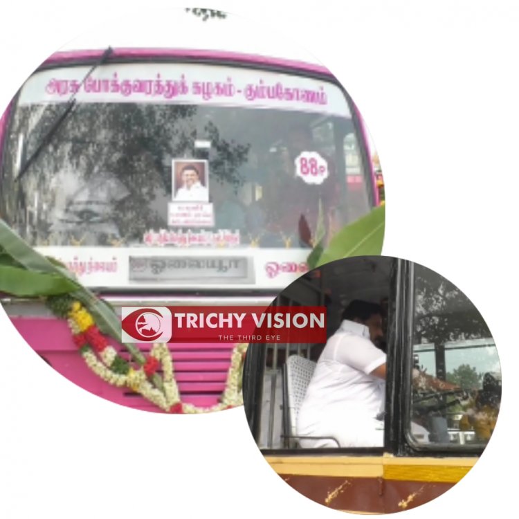 தொடர்ந்து ஶ்ரீரங்கம் சட்டமன்ற உறுப்பினர் பழனியாண்டி பேருந்தை சிறிது தூரம் ஓட்டி சென்றார். இதனை கண்ட பொது மக்கள் மற்றும் கட்சி நிர்வாகிகள் கைதட்டி உற்சாகப்படுத்தினர்.