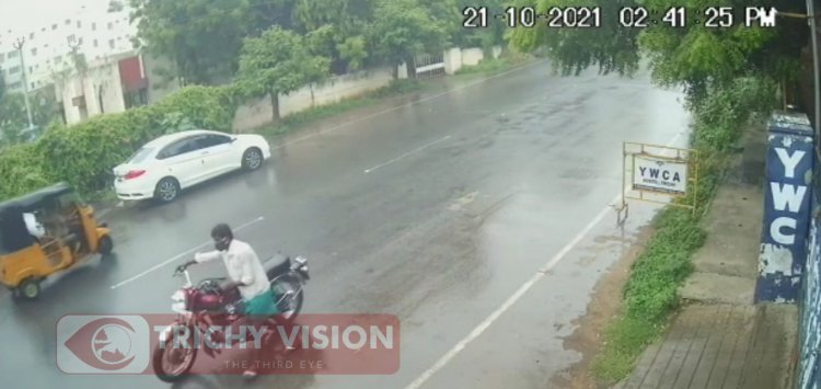 திருச்சி கன்டோன்மென்ட் சட்டம் ஒழுங்கு காவல் நிலையத்தில் தலைமைக் காவலராகப் பணி புரிபவர் கோவிந்தராஜ் .இவர் பணிக்கு இரண்டு சக்கர வாகனம் (புல்லட்டில்) வருவது வழக்கம் . கடந்த 21ம் தேதி அவர் பணியில் நிலையத்தில் இருக்கும் பொழுதுகாவல் நிலையத்துக்கு உள்ளே நிறுத்தி வைத்திருந்த புல்லட் வாகனத்தை அசால்ட்டாக ஒருவர் இரண்டு கிலோமீட்டர் தூரம் தள்ளி கொண்டு சென்றுள்ளார். இந்த காட்சி சிசிடிவியில் பதிவாகிய உள்ளது.