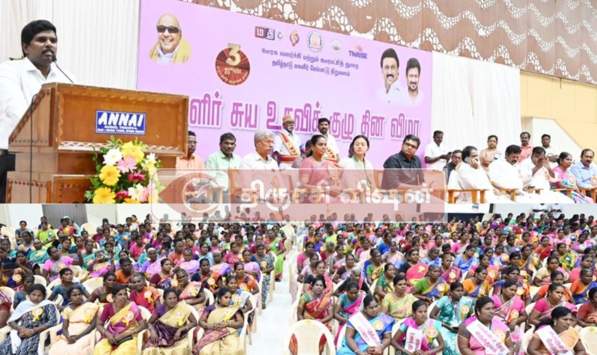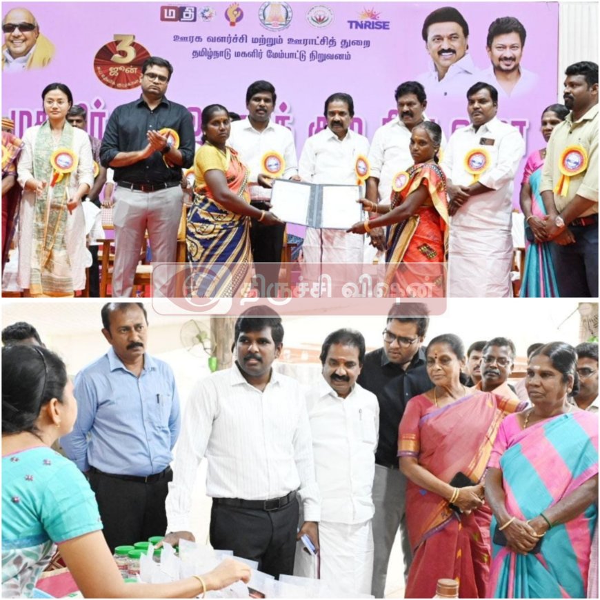 மகளிர் சுய உதவி குழு தின விழாதிருச்சியில் 121.05 கோடி மதிப்பீட்டில் நலத்திட்ட உதவிகள்கலெக்டர், எம்எல்ஏக்கள், மேயர் வழங்கினார்கள்தமிழ்நாடு துணை முதலமைச்சர் உதயநிதி ஸ்டாலின் காணொளி வாயிலாக மகளிர் சுய உதவிக்குழு தினத்தை முன்னிட்டு சென்னையில் நடந்த விழாவில்