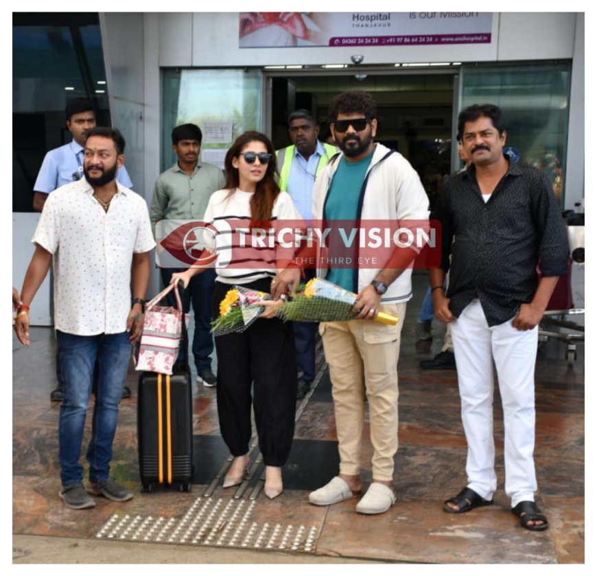 நயன்தாரா விக்னேஷ் சிவனை கண்ட ரசிகர்கள் மற்றும் பொதுமக்கள் அவர்களை சூழ்ந்து கொண்டனர் இதனால் திருச்சி ரயில் நிலையம் பரபரப்பாக காணப்பட்டது. சில ரசிகர்கள் மற்றும் பொதுமக்கள் பிளாட்பாரம் டிக்கட் எடுக்காமல் வந்திருந்தனர். அவர்களை பரிசோதகர்கள் எச்சரித்து அனுப்பினர். இந்நிலையில் நயன்தாரா விக்னேஷ் சிவன் ஜோடி தேஜாஸ் ரயில் மூலம் திருச்சியில் இருந்து சென்னை சென்றனர்.