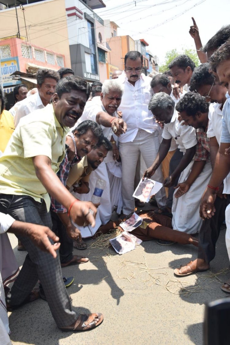 முன்னதாக பாதுகாப்பு பணியில் இருந்த போலீசார் தடுத்து நிறுத்தினர். பின்னர் பேரணியாக சென்ற அதிமுகவினர் ஆ.ராசாவை கண்டித்து ஆர்ப்பாட்டத்தில் ஈடுபட்டனர். மேலும் தரக்குறைவாக பேசிய திமுக துணை பொது செயலாளர் ஆ.ராசாவை கைது செய்யும் வரை போராட்டம் தொடரும் என தெரிவித்தனர்.