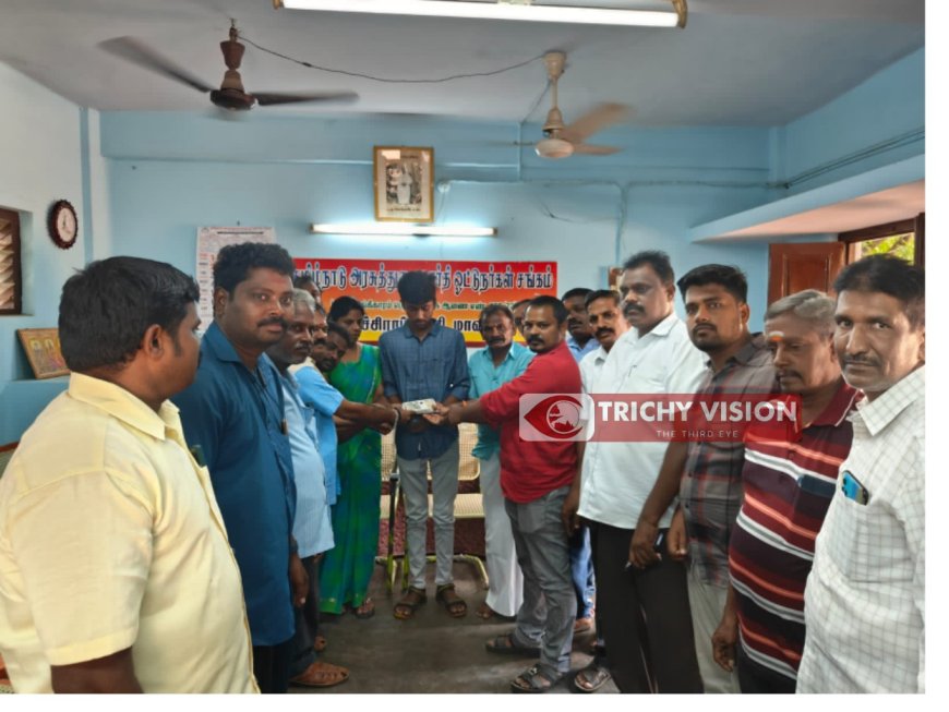 அவரது குடும்பத்திற்கு தமிழ்நாடு அரசு ஊர்தி ஓட்டுநர் சங்கம் திருச்சி மாவட்டத்தின் சார்பாக மாவட்டத் தலைவர் மு.பழனிச்சாமி, நிர்வாகிகள் மற்றும் அனைத்து ஓட்டுநர்களின் முன்னிலையில் வழங்கப்பட்டது.
