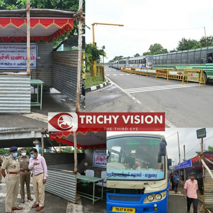 திருச்சி மன்னார்புரம் பகுதியில் ஏற்படுத்தப்பட்டுள்ள தற்காலிக பேருந்து நிலையத்திருந்து புதுக்கோட்டை மற்றும் மதுரைக்கு பேருந்துக்கள் இயக்கப்படுகிறது. அதேபோல சோனா மீனா தியேட்டர் அருகே அமைக்கப்பட்டுள்ள புதிய தற்காலிக பேருந்து நிலையத்திற்கு தஞ்சை, நாகை, வேளாங்கண்ணி ஆகிய பகுதிகளுக்கு பேருந்துக்கள் இயக்கப்படுகிறது.