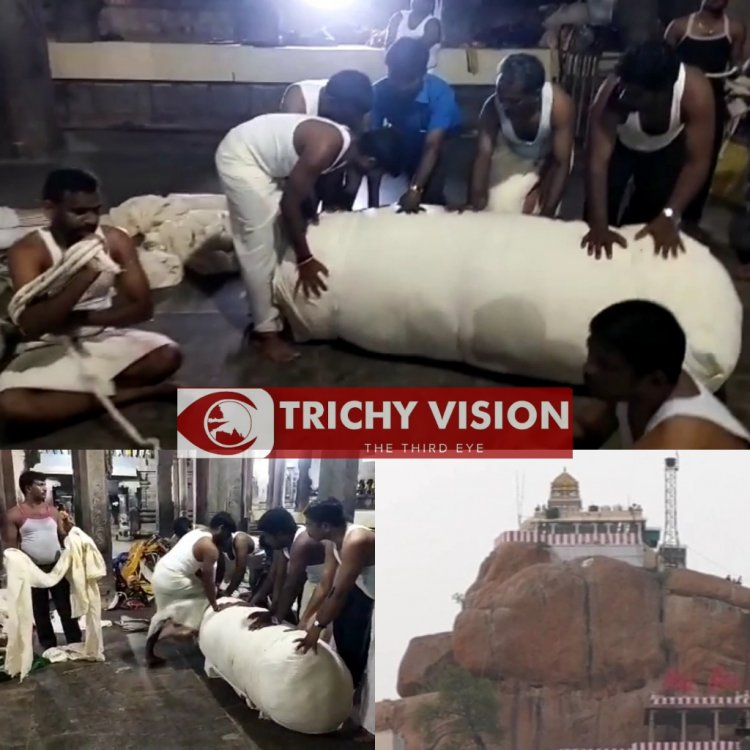 மலைக்கோட்டையில் மெகா தீப திரி தயாரிக்கும் பணி