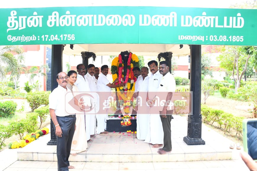 தமிழ்நாடு அரசு போக்குவரத்து கழக அலுவலக வளாகத்தில் அமைந்துள்ள தீரன் சின்னமலை சிலைக்கு திருச்சி தெற்கு மாவட்ட கழகச் செயலாளர் அமைச்சர் அன்பில் மகேஷ் ஐயா மொழி அவர்களின் வழிகாட்டுதலின் பெயரில் மாநகரக் கழக செயலாளர்