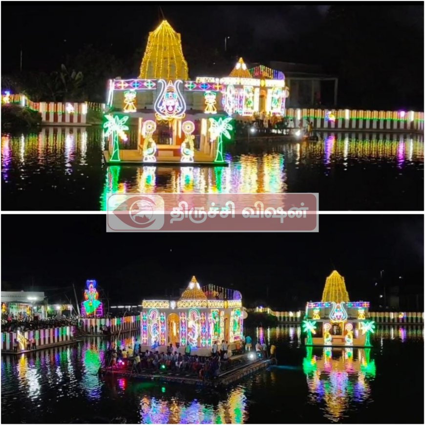 சக்தி ஸ்தலங்களில் பிரசித்தி பெற்ற சமயபுரம் மாரியம்மன் கோவில் சித்திரை பெருந் திருவிழா தெப்ப உற்சவம் – சிறப்பு அலங்காரத்தில் உற்சவர் மாரியம்மன் தெப்பத்தில் எழுந்தருளி பக்தர்களுக்கு காட்சி – பல ஆயிரகணக்கான பக்தர்கள் ஓம் சக்தி பராசக்தி கோஷத்துடன் தரிசனம் செய்தனர்.