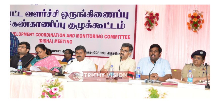 திருச்சி மாவட்ட வளர்ச்சி ஒருங்கிணைப்பு குழு மற்றும் கண்காணிப்பு குழு கூட்டம் மாவட்ட ஆட்சியர் அலுவலகத்தில் இன்று நடைபெற்றது. இந்த கூட்டத்தில் திருச்சி எம் பி துரை வைகோ, பெரம்பலூர் எம்பி அருண்நேரு, கரூர் எம்பி ஜோதிமணி, திருச்சி மாவட்ட ஆட்சியர் பிரதீப்குமார் மற்றும் அரசு அதிகாரிகள் மக்கள் பிரதிநிதிகள் பலர் கலந்து கொண்டனர்.