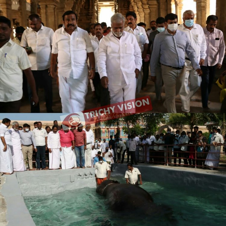 அதனை தொடர்ந்து திருவானைக்கோவில் அகிலாண்டேஸ்வரி ஜம்புகேஸ்வரர் கோவிலில் கோவில் யானைக்காக அமைக்கப்பட்டுள்ள யானை குளியல் தொட்டியையும், யானை அதில் குளிப்பதையும் அமைச்சர்கள் பார்வையிட்டனர். பின்னர் கோவிலில் சாமி தரிசனம் செய்தனர். தொடர்ந்து செய்தியாளர்களிடம் பேசிய அமைச்சர் சேகர் பாபு…