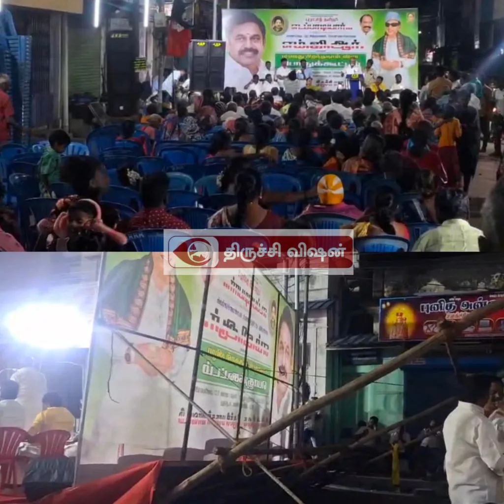 திருச்சி பருப்புகாரதெருவில் திருச்சி மாநகர் மாவட்ட அதிமுக சார்பில் எம்ஜிஆர் பிறந்த நாள் விழா பொதுக்கூட்டம் மாநகர் மாவட்ட செயலாளர் சீனிவாசன் தலைமையில் நடைபெற்றது .