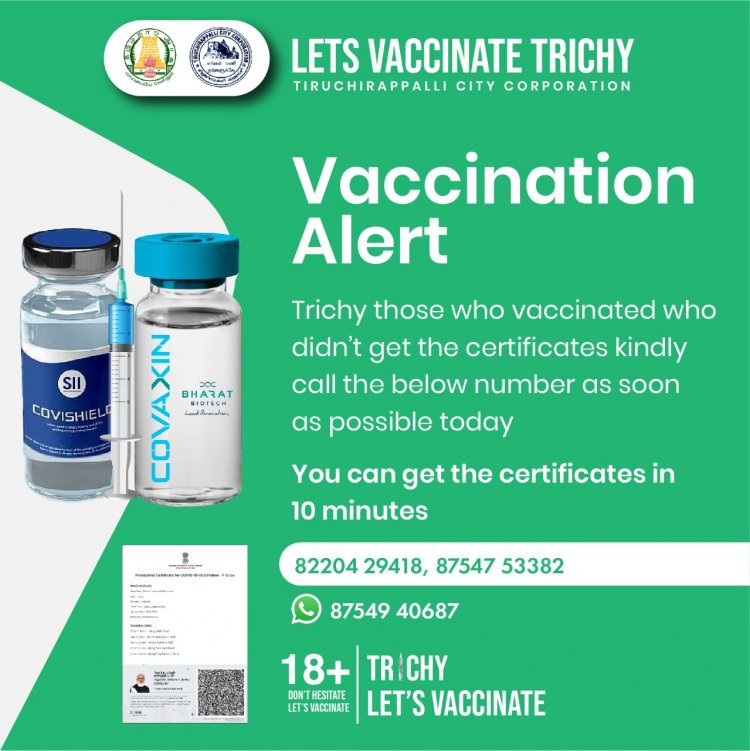 சான்றிதழ் பெறாதவர்கள் இன்றைய தினம் 8220428418,8754753382 என்ற எண்களை தொடர்புகொண்டு விவவரங்களை அளிக்கலாம். 10நிமிடத்தில் 8754940687 எண்ணில் வாட்ஸ்அப் வழியாக சான்றிதழ்கள் வழங்கப்படும்.