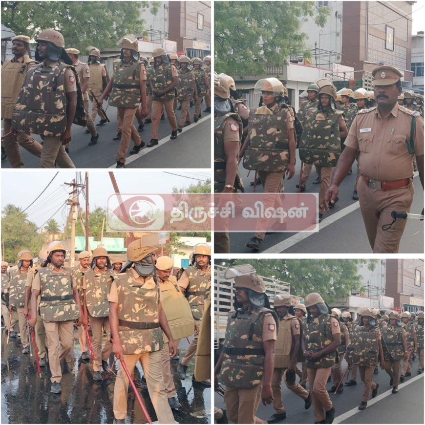 தொட்டியம் மதுரை காளியம்மன் கோவில் திருவிழாவை முன்னிட்டு திருச்சி மாவட்ட காவல்துறையினரின் கொடி அணிவகுப்பு 31.03.2025 ம் தேதி மாலை 5 மணி அளவில் திருச்சி மாவட்ட காவல்