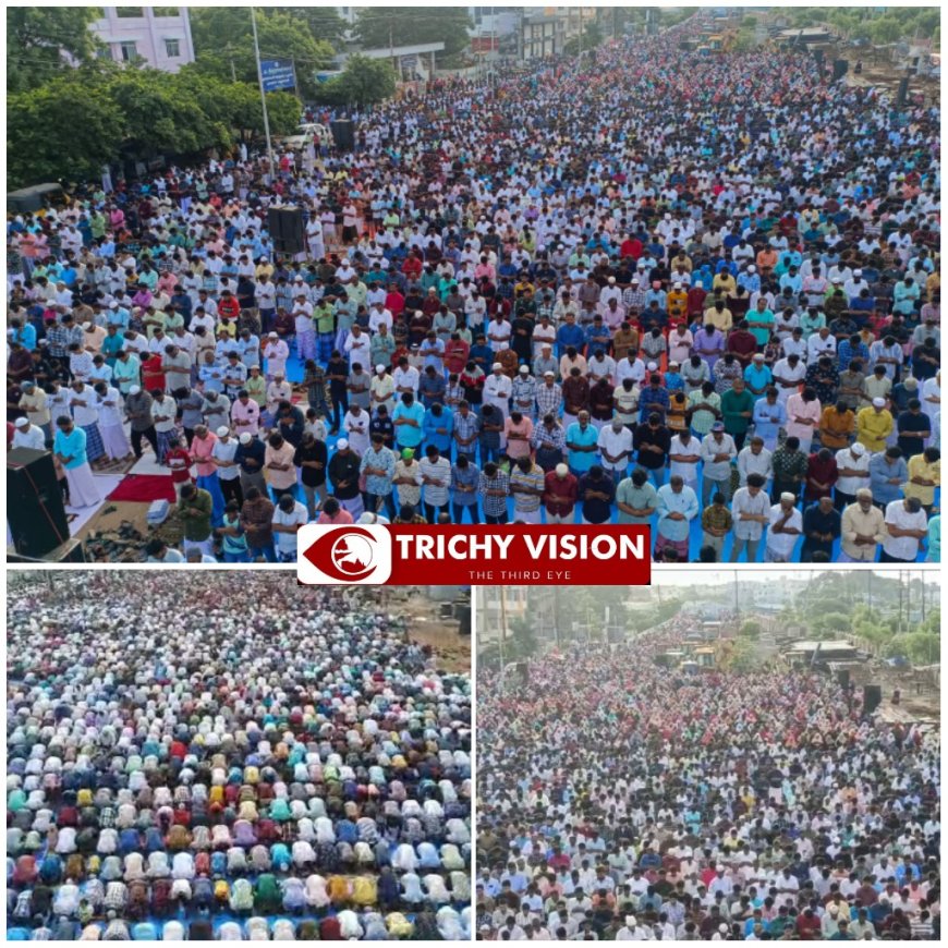திருச்சி தென்னூர் அண்ணா நகர் உழவர் சந்தை மைதானத்தில் தமிழ்நாடு தவ்ஹீத் ஜமாத் சார்பில் தியாகத் திருநாள் சிறப்பு தொழுகை நடைபெற்றது. இதில் பெண்கள் உள்ளிட்ட ஆயிரக்கணக்கான இஸ்லாமியர்கள் சிறப்பு தொழுகையில் ஈடுபட்டனர். இஸ்லாமியர்கள் ரமலான் கொண்டாட்டத்தில் சிறப்பு தொழுகை முடித்து ஒருவரை ஒருவர் கட்டித் தழுவி தங்களது மகிழ்ச்சியை அன்பை பரிமாறிக் கொண்டனர்.
