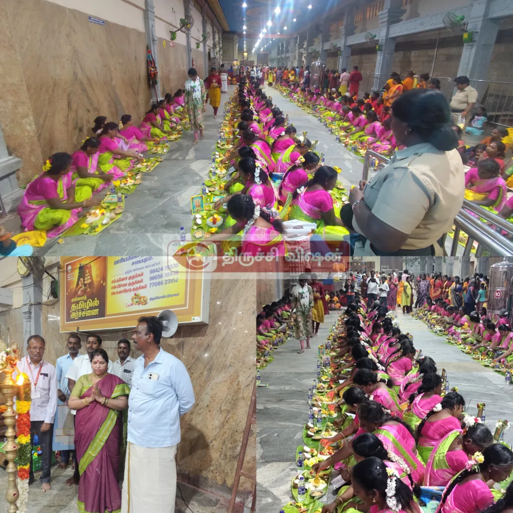 திருச்சி மாவட்டம், உலகப்புகழ் பெற்ற சமயபுரம் அருள்மிகு மாரியம்மன் திருக்கோயிலில் இன்று (வெள்ளிக்கிழமை) தை மாத பௌர்ணமியை முன்னிட்டு மாபெரும் திருவிளக்கு பூஜை மிக விமரிசையாக நடைபெற்றது.
