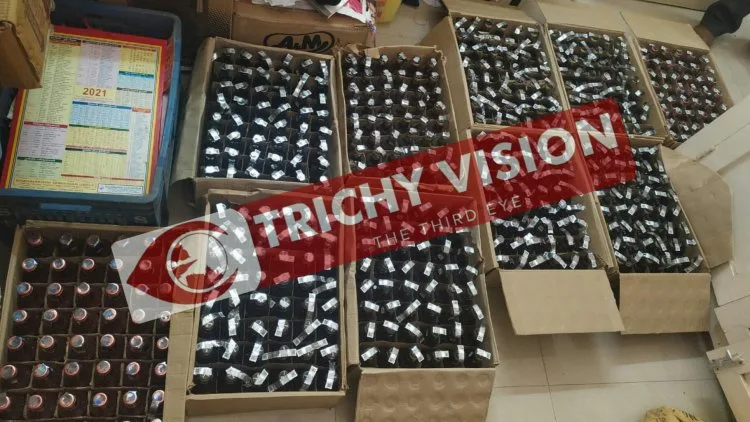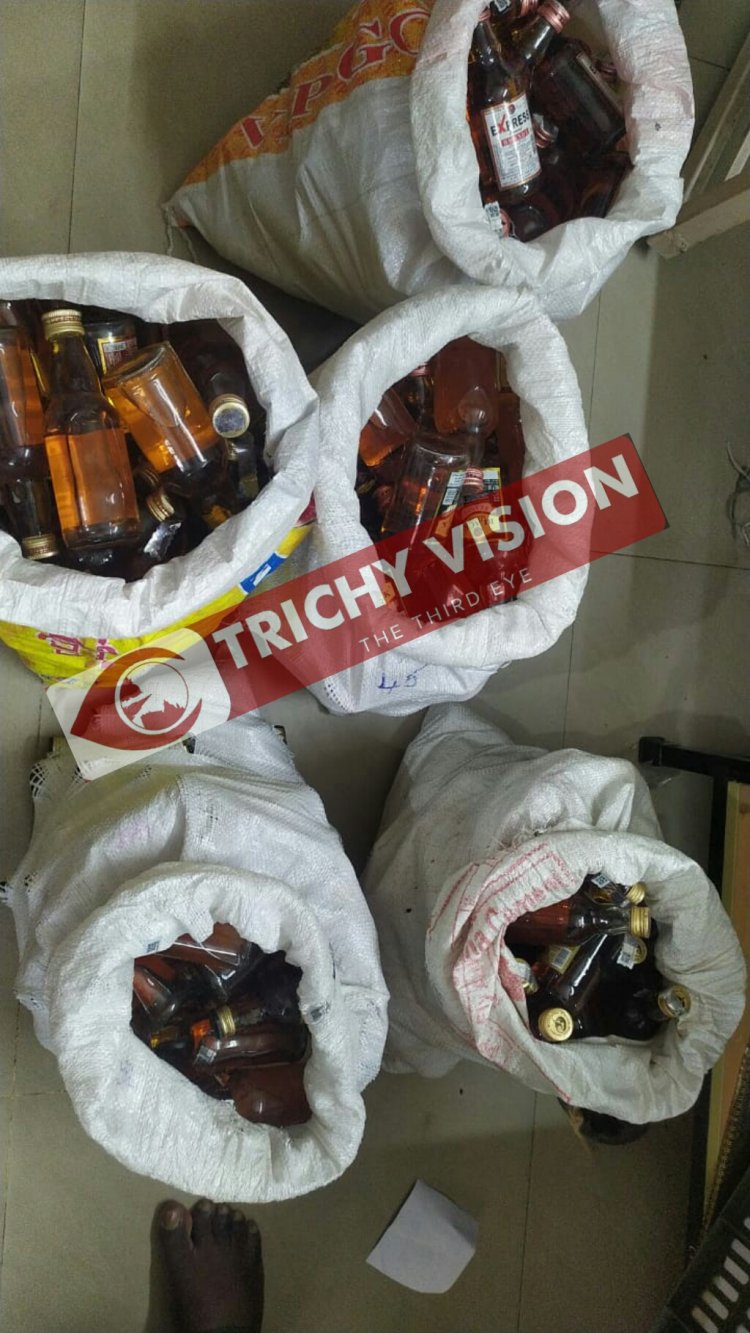 இதன் காரணமாக திருச்சி மாநகர பகுதிகளில் ஆங்காங்கே சட்டவிரோதமாக அதிக விலைக்கு மது விற்பனை நடைபெற்று வருகிறது. இதனை தடுக்கும் பொருட்டு காவல்துறையினர் தீவிர சோதனையில் ஈடுபட்டு வருகின்றனர். இந்நிலையில் திருச்சி வயலூர் ரோடு சீனிவாச நகரைச் சேர்ந்த போஸ் நாடார் செல்வம் என்பவர் பதுக்கி வைத்திருந்த மதுபாட்டில்களை ஶ்ரீரங்கம் போலீசார் பறிமுதல் செய்தனர்.