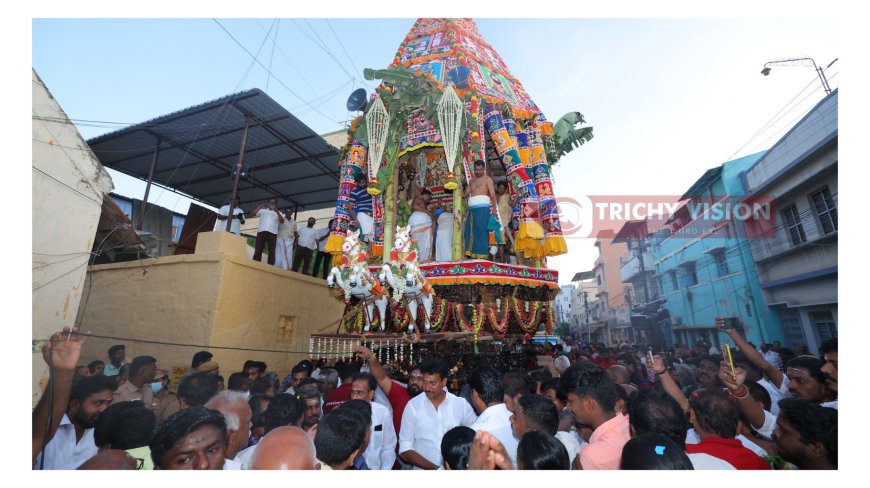 6-ம் நாள் நிகழ்ச்சியாக சுவாமி- அம்பாளுக்கு திருக்கல்யாணம் நிகழ்ச்சி நடைபெற்றது. தொடர்ந்து 9-ம் நாளான நேற்று அதிகாலை 04:30 மணிக்கு மேல் மேஷ லக்கனத்தில் சுவாமி-அம்பாள் கோவிலில் இருந்து சிறப்பு அலங்காரத்தில் புறப்பாடு செய்யப்பட்டு மலைக்கோட்டை உள்வீதி வழியாக 05:40 மணிக்கு தாயுமான சுவாமி உடனுறை மட்டுவார் குழலம்மை பெரிய தேரிலும், தாயார் சிறிய தேரிலும் எழுந்தருளினர். பின்னர் 06:10 மணிக்கு திருத்தேர் வடம் பிடித்தல் நிகழ்ச்சி நடைபெற்றது. இந்த தேரோட்டத்தை அமைச்சர் அன்பில் மகேஸ் பொய்யாமொழி வடம் பிடித்து இழுத்து தொடங்கி வைத்தார்.