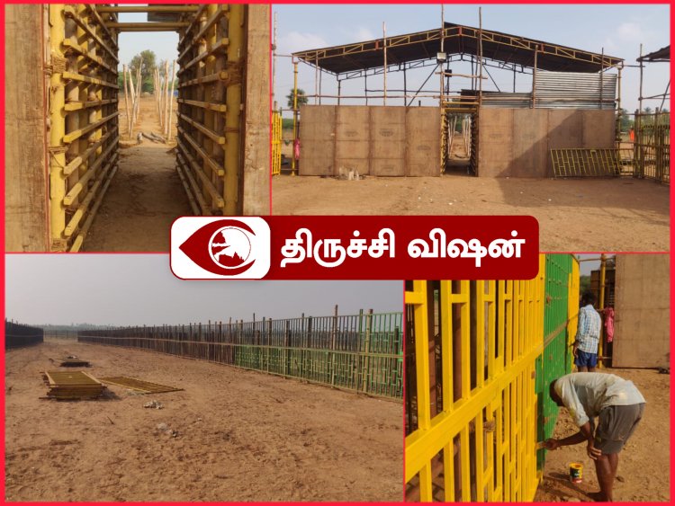 திருச்சி சூரியூர் ஜல்லிக்கட்டு தயாராகும் வாடிவாசல்