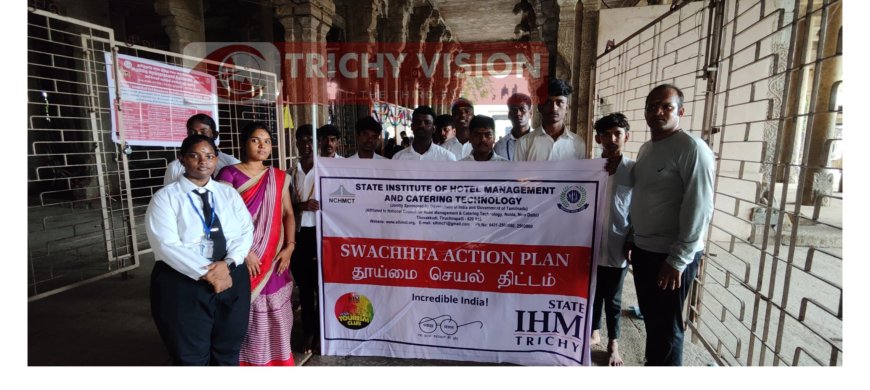 திருச்சியில் உள்ள மாநில ஹோட்டல் மேனேஜ்மென்ட் & கேட்டரிங் தொழில்நுட்பம் நிறுவனம் (SIHMCT) சார்பில் திருவானைக்கோவிலில் ஸ்வச்தா செயல் திட்டம் நடைபெற்றது.