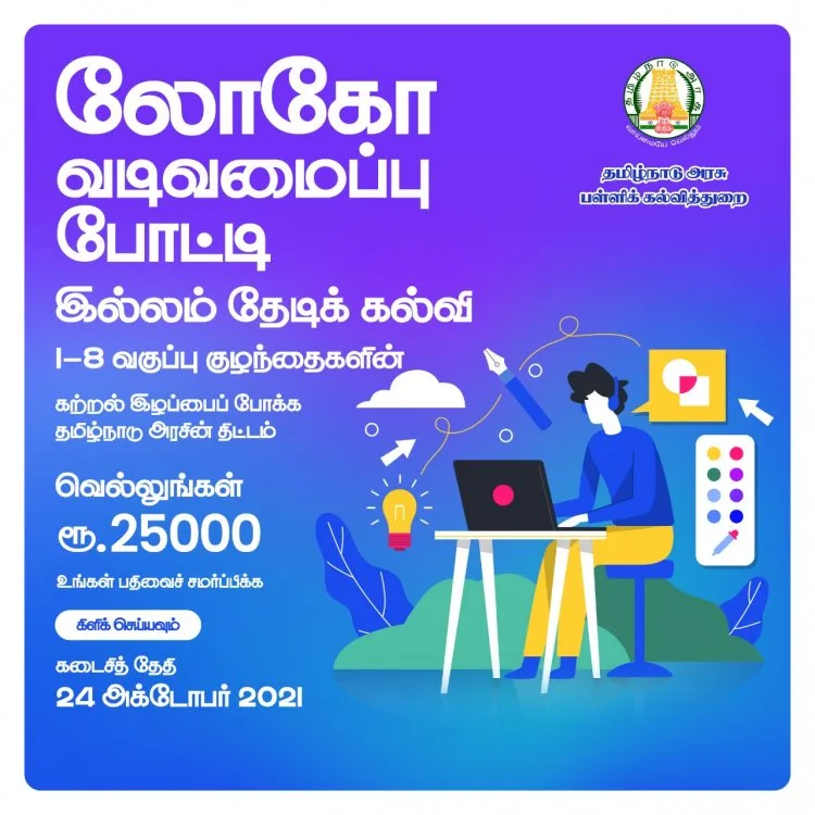 அதன் தொடர்ச்சியாக, பள்ளிக்கல்வித்துறை மாணவர்களின் கற்றல் குறைபாடுகளை தீர்க்க தீவிர நடவடிக்கை மேற்கொள்ளப்பட்டு இந்த நிலை “இல்லம் தேடி கல்வி” என்ற திட்டம் தொடங்கப்பட உள்ளது. நவம்பர் 15ஆம் தேதி இத்திட்டம் தொடங்கியிருக்கும் நிலையில் இத்திட்டத்திற்கான லோகோ வடிவமைப்பு போட்டியை அறிவித்துள்ளது.