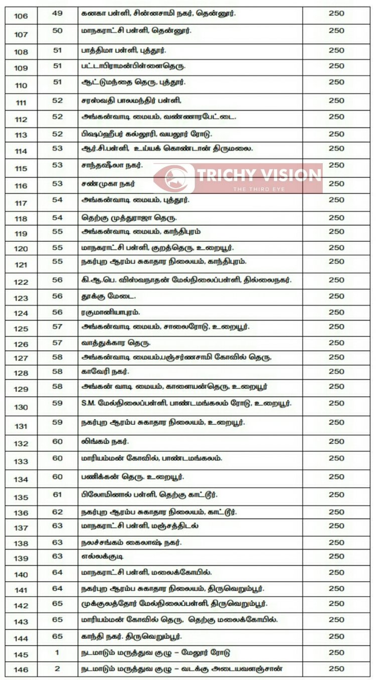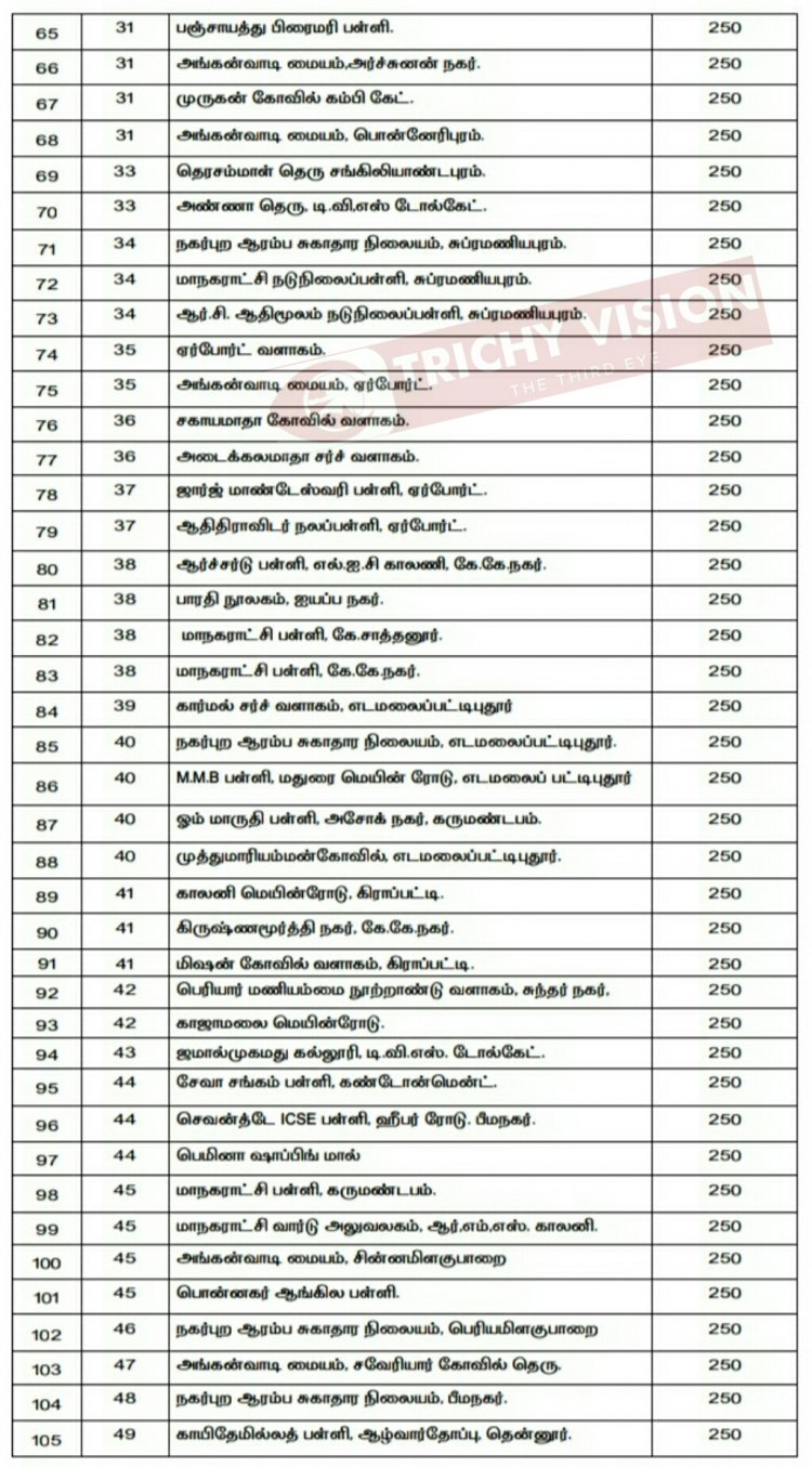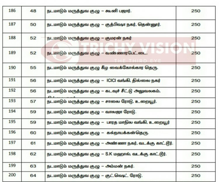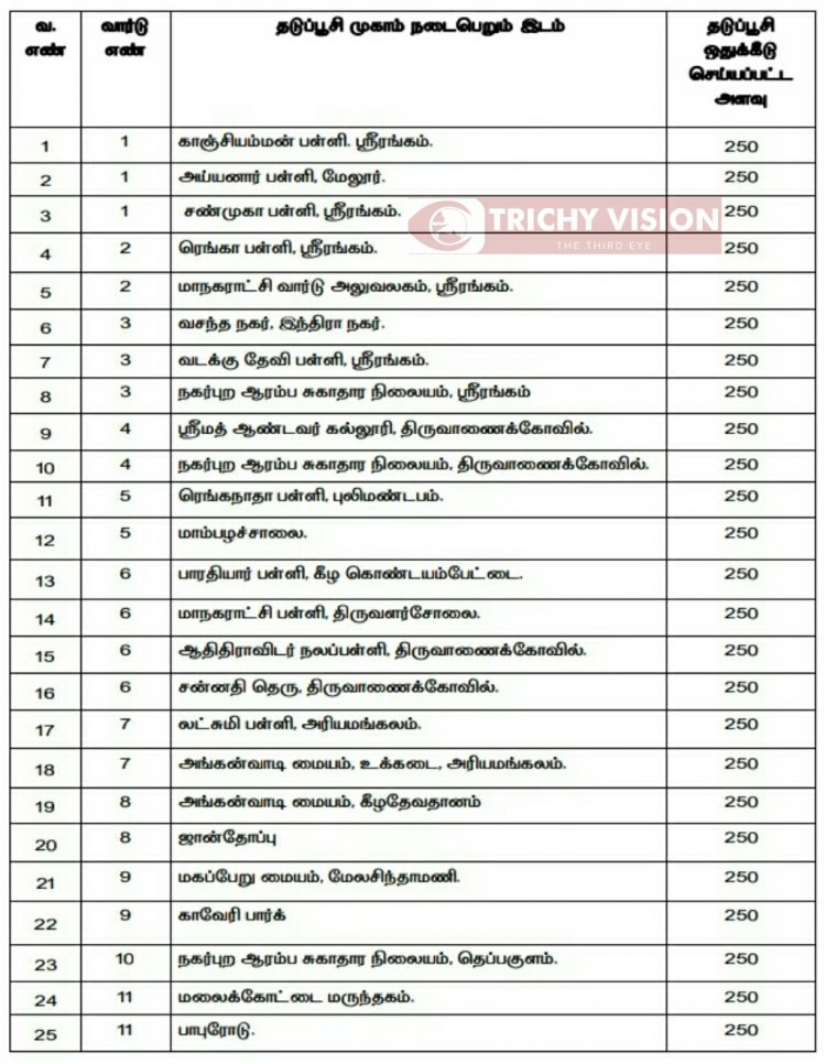 திருச்சி மாநகரில் 200 இடங்களில் இன்று (08.01.2022) கோவிசீல்டு, கோவாக்சின் தடுப்பு ஊசிகள் போடப்படும் இடங்களை மாநகராட்சி நிர்வாகம் அறிவித்துள்ளது.