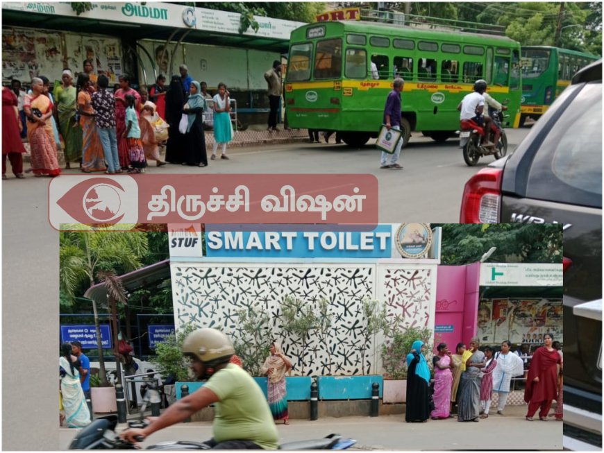 திருச்சி அரசு மருத்துவமனை அருகில் நவீன கழிப்பறை உள்ளது. அதாவது வயலூர் சீனிவாசநகர் சோமரசம்பெட்டை செல்லும் பயணிகள் பேருந்து நிறுத்தம் அருகில் அமைக்கப்பட்டுள்ளது.அப்பேருந்து நிலையத்தில் பேருந்துகள் அனைத்தும் நிழற்குடை அருகில் நிற்காமல் முன்னதாகவே நிறுத்தப்படுவதால் பயணிகள் அந்த கழிவறை முன்பே நிற்கும் சூழல் ஏற்படுகிறது