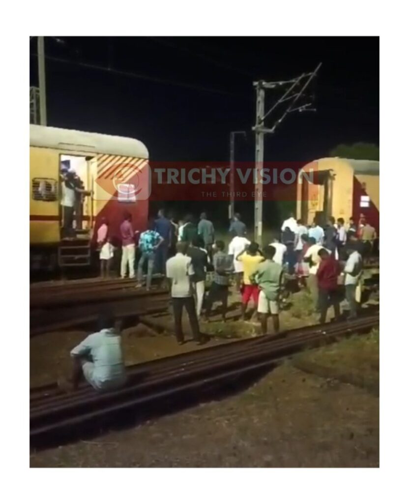 பயணிகள் ஏராளமான ரயில் பெட்டியில் இருந்து இறங்கி பெட்டியை இணைக்கும் வரை அதிர்ச்சி அடைந்து பார்த்துக் கொண்டிருந்தனர்.