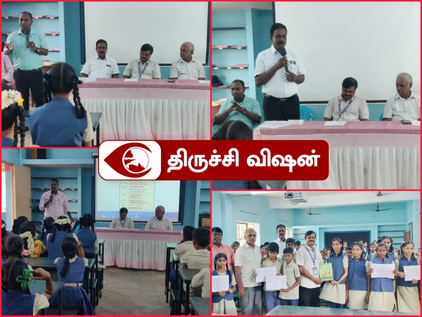 பள்ளி தலைமையாசிரியர் ஜீவானந்தன் தலைமை வகித்தார்.NMMS தேர்வு பயிற்சியை திருச்சி மாவட்ட முதன்மைக் கல்வி அலுவலரின் நேர்முக உதவியாளர் சைவ. சற்குணன் அவர்கள் தொடங்கி வைத்து, மாணவர்களுக்கு பயிற்சி புத்தகங்கள் வழங்கி பேசியதாவது,