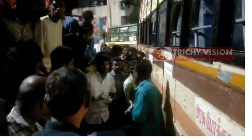 திருச்சி மாவட்டம் லால்குடி அருகே மேலவாளாடி, புதுக்குடி, குடித்தெருவை சேர்ந்தவர் மனோஜ்குமார் (28). இவர் நேற்று இரவு நம்பர் 1 டோல்கேட் ரவுண்டானா அருகில் நடந்து சென்று கொண்டிருந்தார். அப்போது மண்ணச்சநல்லூர் அருகே பூனாம்பாளையம் மந்தியார் ஓடை பகுதியைச் சேர்ந்த பால்ராஜ் (51) சத்திரம் பேருந்து நிலையத்திலிருந்து திருப்பட்டூர் செல்வதற்காக அரசு பேருந்தை ஓட்டி வந்து கொண்டிருந்தார்.