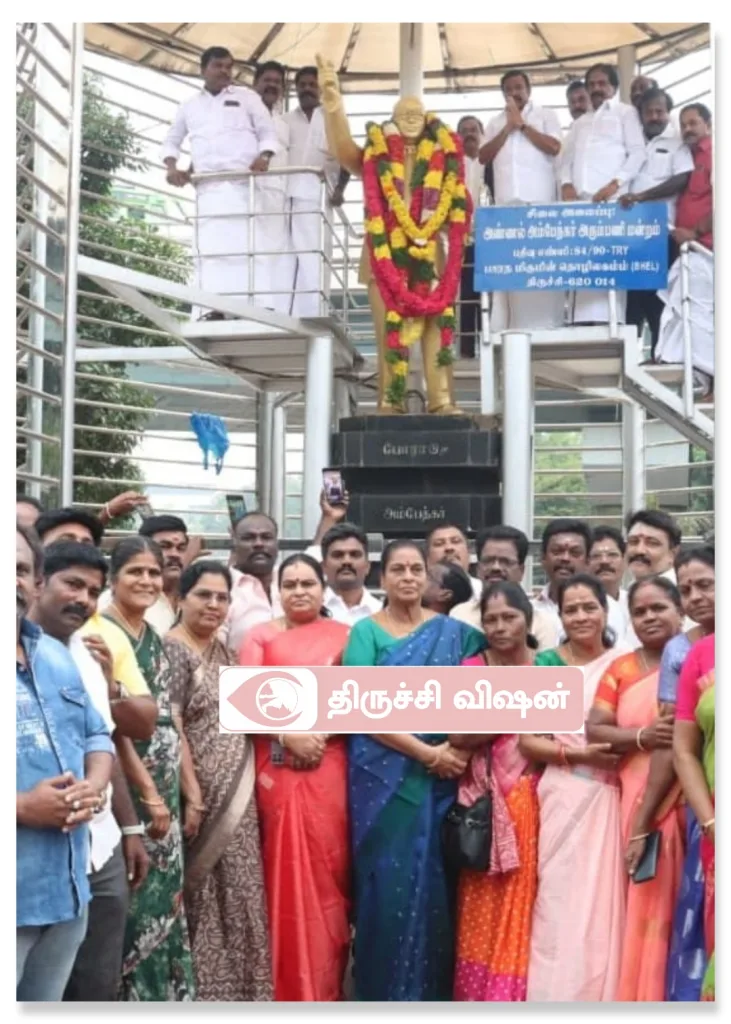 திருச்சியில் கழக முதன்மைச் செயலாளரும் நகராட்சி நிர்வாக துறை அமைச்சருமான கே என் நேரு அவர்கள் சட்டமேதை டாக்டர் அம்பேத்கர் அவர்களின் நினைவு நாளை முன்னிட்டு மத்திய பேருந்து நிலையம் அருகில் உள்ள அவரது திருவுருவ சிலைக்கு மாலை அணிவித்து மரியாதை செலுத்தினர்.
