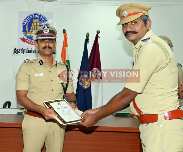 ஆய்வாளர் ஆகியோர்களை திருச்சி மாநகர காவல் ஆணையர் நேரில் அழைத்து பணிப்பாராட்டு சான்றிதழ் மற்றும் பண வெகுமதி அளித்து வெகுவாக