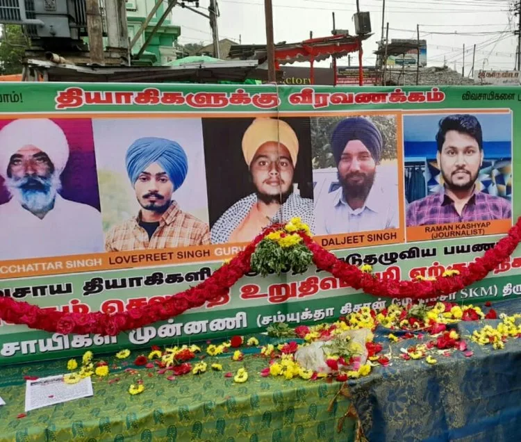 மூன்று வேளாண் சட்டங்களை திரும்பப் பெற வலியுறுத்தி உத்தரப்பிரதேசம் மாநிலம் லக்கிம்பூரில் நடைபெற்ற விவசாயிகள் போராட்டத்தின் போது மத்திய அமைச்சரின் மகன் கார் மோதி 4 விவசாயிகள் மற்றும் துப்பாக்கி சூட்டில் பத்திரிக்கையாளர் உயிரிழந்தார்.