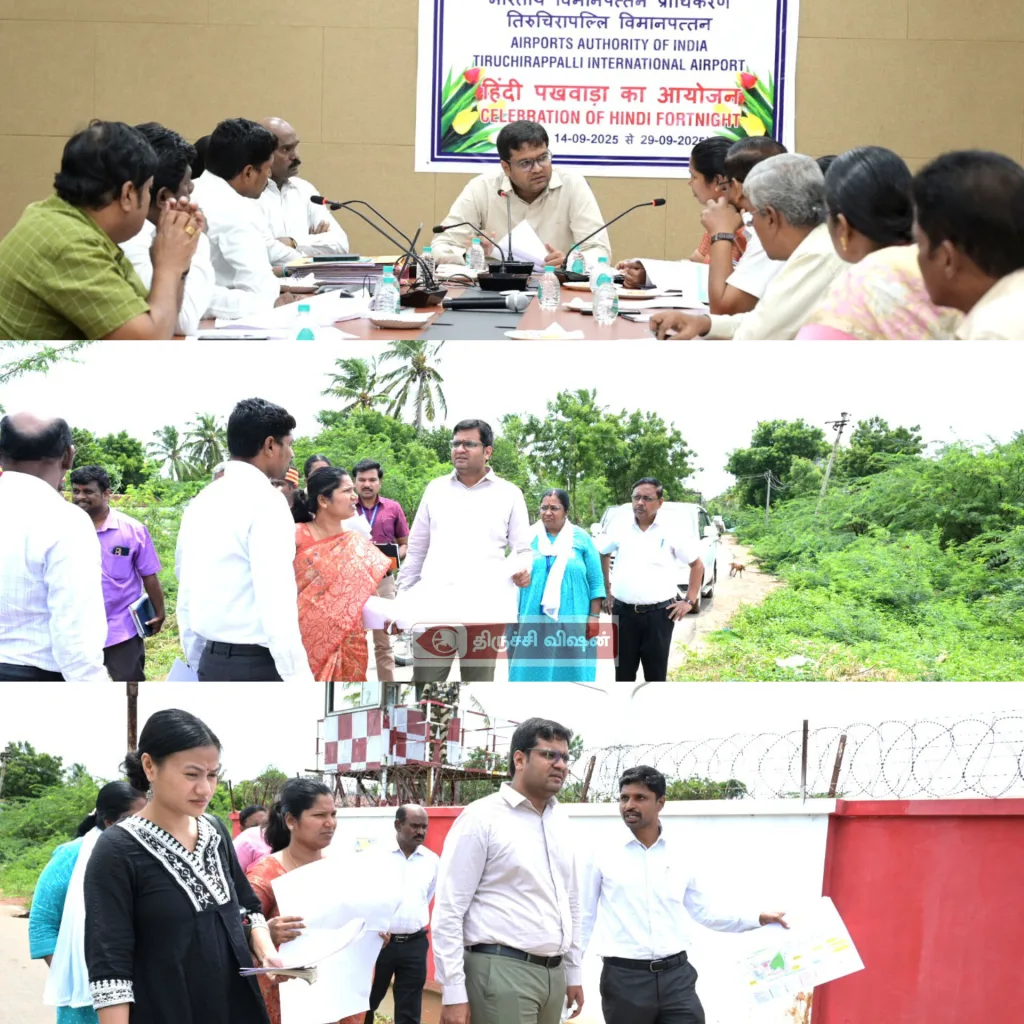 திருச்சிராப்பள்ளி மாவட்டம், திருச்சிராப்பள்ளி கிழக்கு வட்டம், கொட்டப்பட்டு கிராமம் மற்றும் திருவெறும்பூர் வட்டம். கீழக்கல்கண்டார்கோட்டை மற்றும் கீழக்குறிச்சி ஆகிய கிராமங்களில் திருச்சிராப்பள்ளி விமான நிலைய விரிவாக்கத்திற்காக நடைபெறும் நிலம் கையகப் பணிகள் குறித்து (26.09.2025) திருச்சிராப்பள்ளி மாவட்ட ஆட்சித்தலைவர் திரு.வே.சரவணன்,இ.ஆ.ப., அவர்கள் தலைமையில் திருச்சிராப்பள்ளி விமான நிலைய கூட்ட அரங்கில் ஆய்வுக் கூட்டம் நடைபெற்றது.