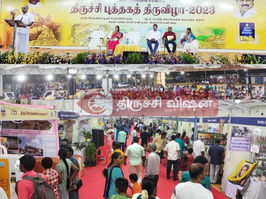 திருச்சிராப்பள்ளி மாவட்டம், சத்திரம் பேருந்து நிலையம் அருகில் உள்ள செயின்ட் ஜோசப் பள்ளி மைதானத்தில் 2வது நாளாக பிரம்மாண்டமாக நடைபெற்று வரும் திருச்சி புத்தகத் திருவிழா 2023ல் புத்தக அரங்குகள் மற்றும் கலை நிகழ்ச்சிகளை நேற்று (24.11.2023) ஏராளமான பொதுமக்கள், மாணவர்கள் வருகை தந்து பார்வையிட்டனர்.