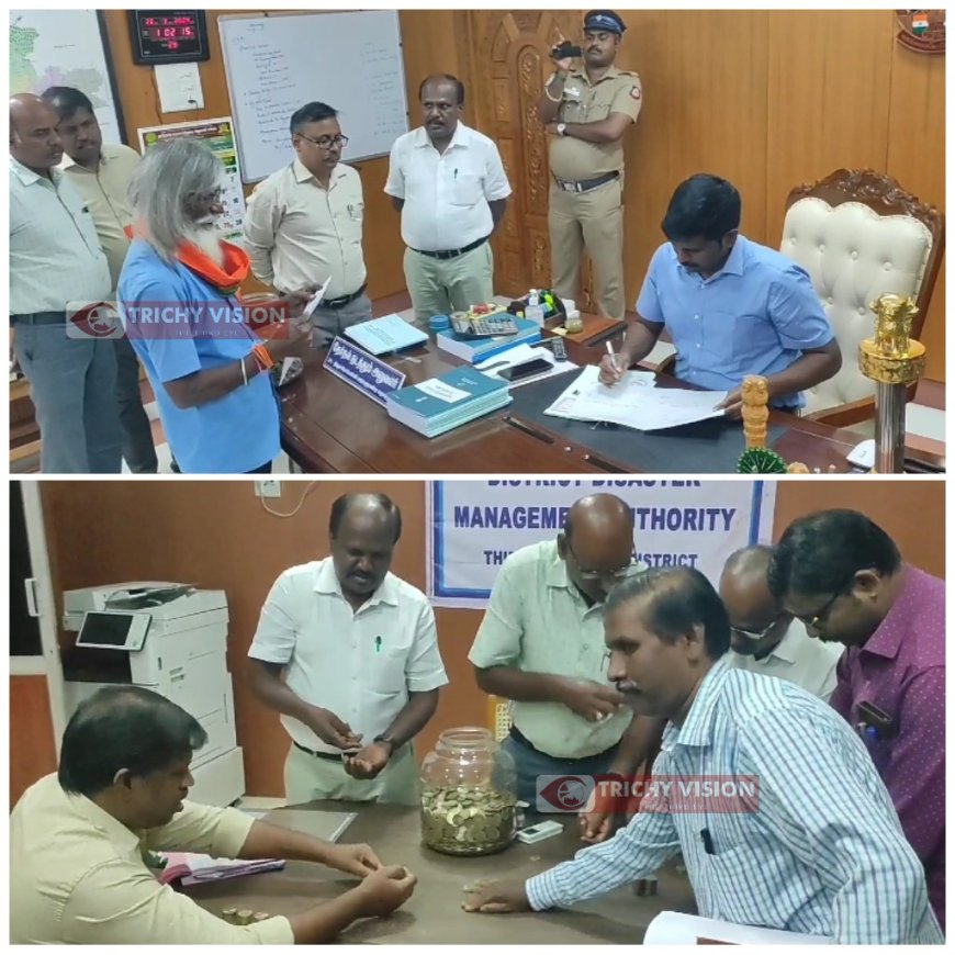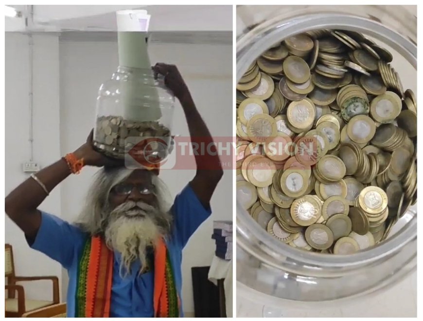 இன்று திருச்சி பாராளுமன்ற தொகுதியில் சுயேட்சையாகப் போட்டியிடுவதற்காக ஓய்வு பெற்ற அரசு பேருந்து ஓட்டுநர் ராஜேந்திரன் என்பவர் 10 ரூபாய் நாணயங்கள் 25 ஆயிரம் ரூபாயுடன் வந்து மாவட்ட ஆட்சியரும், தேர்தல் நடத்தும் அலுவலருமான பிரதீப் குமாரிடம் கொடுத்து வேட்பு மனு தாக்கல் செய்தார்.