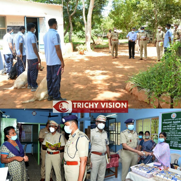 திருச்சி மாநகர காவல் ஆணையர் பு.கார்த்திகேயன் இன்று 12.10.2021-ம் தேதி காலை திருச்சி மாநகரம், கே.கே.நகரில் உள்ள காவலர் மருத்துவமனை, பெட்ரோல் பங்க், Dog Squad, நூலகம் ஆகியவற்றை ஆய்வு செய்து அறிவுரைகள் வழங்கினார்கள். மாநகர ஆயுதப்படை வளாகத்தில் உள்ள செடி, கொடிகளை அகற்றி சுத்தமாக வைத்திருக்க வேண்டும் என்றும், Dog Squad -ல் வழக்கு விசாரணைக்கு உதவும் வகையில் நாய்களை சிறப்பாக தயார் செய்து வைத்திருக்க வேண்டும் என்றும் அறிவுறுத்தினார்கள்.
