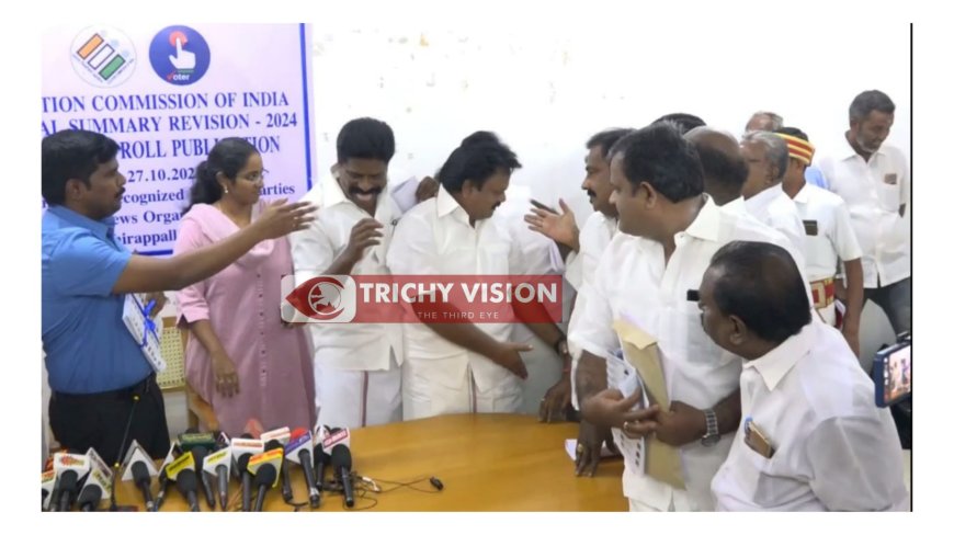 அதன் பின்னர் திருச்சி மாவட்ட ஆட்சியர் அலுவலகத்தில், திருச்சி மாவட்டத்தில் உள்ள 9 சட்டமன்றத் தொகுதிகளுக்கான வரைவு வாக்காளர் பட்டியலை மாவட்ட ஆட்சியர் பிரதீப் குமார் வெளியிட்டார்.