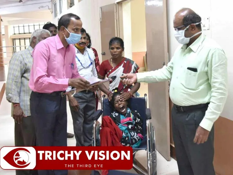 திருச்சி ஸ்ரீரங்கம் புங்கனூரை சேர்ந்த மாரியப்பன் என்பவரது மகள் கவுசல்யா. முற்றிலும் மனவளர்ச்சி குன்றிய இவர் நேற்று ஆட்சியரகத்தில் மனு அளிப்பதற்காக வந்திருந்தார்.