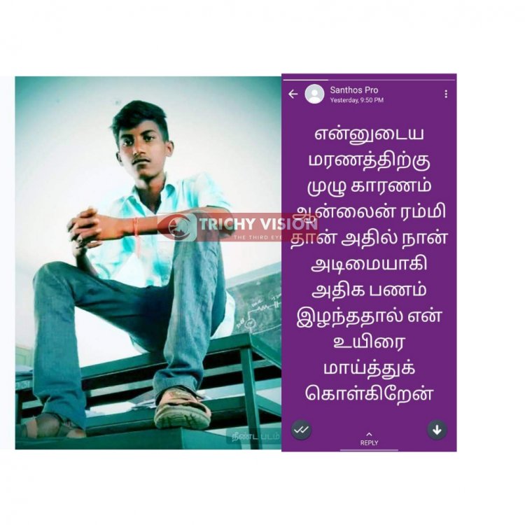 அப்போது தனது பெற்றோர் எதிர்ப்பை மீறி வீட்டிலிருந்த 2 கிராம் மோதிரம் மற்றும் பணத்தை எடுத்து கொண்டு வெளியேறிய கல்லூரி மாணவன், அனைத்தையும் ஆன் லைன் ரம்மியில் இழந்துள்ளார். இதனால் விரக்தியடைந்த இன்ஜினியரிங் மாணவன் சந்தோஷ் தனது செல் போனில் தற்கொலை செய்துகொள்ளபோவதாக ஸ்டேட்டஸ் வைத்திருந்த நிலையில், மணப்பாறை கீரை தோட்டம் என்றயிடத்தில் ரயில் பாய்ந்து தற்கொலை செய்து கொண்டார்.