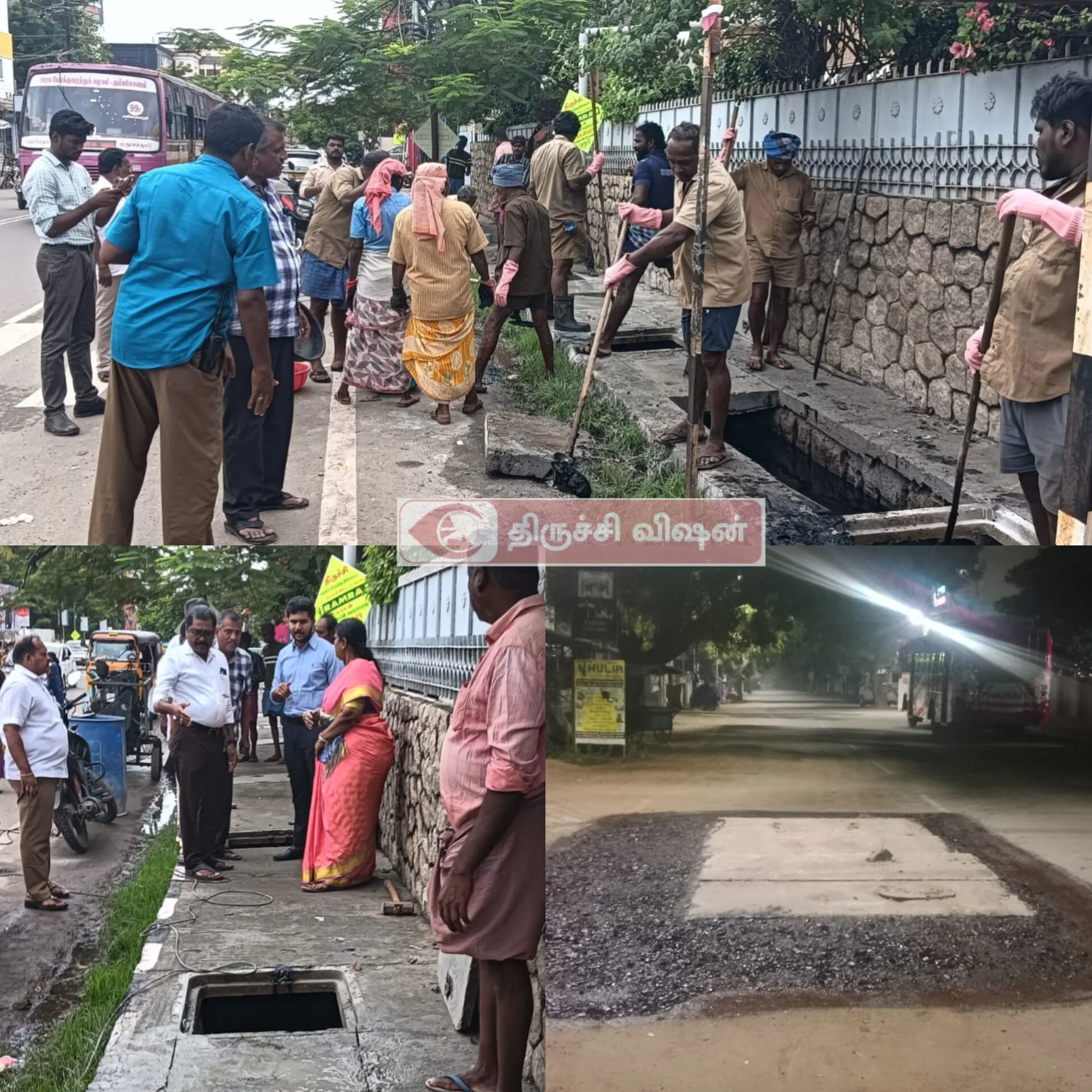 மேலும், திருச்சிராப்பள்ளி மாநகராட்சியில் அனைத்து மண்டலங்களிலும் உள்ள சாலைகளில் ஏற்பட்டுள்ள பள்ளத்தை சீரமைக்கும் பணிக்கு மண்டலத்திற்கு தலா ரூ.20.00 இலட்சம் வீதம் ரூ.100.00 இலட்சம் மதிப்பீட்டில் சாலைகள் சீரமைக்கும் பணிகள் நடைபெற்று வருகிறது.