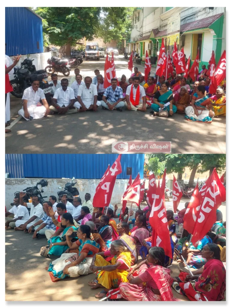 இந்திய கம்யூனிஸ்ட் கட்சியின் ஸ்ரீரங்கம் பகுதி குழு சார்பில் ஸ்ரீரங்கம் மண்டல அலுவலகத்தில் பகுதி துணைச் செயலாளர் எஸ். கருணாகரன் தலைமையில் காத்திருப்பு போராட்டம் நடைபெற்றது. இதில் மாவட்ட செயலாளர் எஸ்.சிவா, ஏஐடியுசி மாவட்ட பொதுச் செயலாளர் க.சுரேஷ், மாணவர் பெருமன்றத்தின் மாநில தலைவர் க.இப்ராகிம், ஏ ஐ டி யு சி மாவட்ட பொருளாளர் ராமராஜ், தரைக்கடை சங்க மாவட்ட செயலாளர் அன்சர்தீன், மற்றும் பகுதி செயலாளர் இரா.சுரேஷ் முத்துசாமி, எஸ்.பார்வதி எம்.ஆர். முருகன் கலந்து கொண்டனர்.