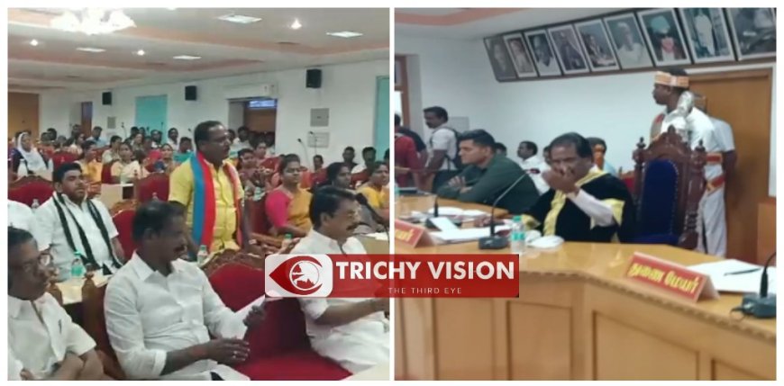 ஏற்கனவே மாநகராட்சி பட்ஜெட்டில் நிதி ஒதுக்கீடு தொடர்பாக திமுக கவுன்சிலர்களே மேயரை எதிர்த்து தர்ணா போராட்டத்தில் ஈடுபட்ட இந்த நிலையில் தற்பொழுது திமுக கூட்டணி கட்சி இருக்கக்கூடிய கவுன்சிலர்களுக்கு ஜாதி ரீதியாக இருக்கை ஒதுக்கப்படுவதாக ஒரு குற்றச்சாட்டு எழுந்துள்ளது திருச்சி மாநகராட்சி கூட்டத்தில் வழக்கமாக நடைபெறும் மாமன்ற கூட்டத்திற்கு செய்தியாளர்கள், புகைப்படக்காரர்கள் மற்றும் ஒளிப்பதிவாளர்கள் 10 நிமிடங்கள் அனுமதிக்கப்படுவர். ஆனால் இன்று நடைபெற்ற கூட்டத்தில் ஜாதி ரீதியான பிரச்சினை இருந்ததால் இக்கூட்டத்தில் நடைபெறும் நிகழ்வுகளை செய்தி சேகரிக்க கூடாது என அங்கிருந்த பத்திரிகையாளர்கள் மற்றும் ஊடக ஒளிப்பதிவாளர்களை கூட்ட அரங்கில் இருந்து வெளியே செல்லுமாறு மேயர் கடிந்து கொண்டார்