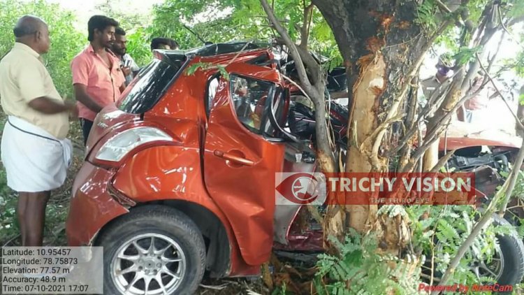 சென்னையிலிருந்து திருச்சியை நோக்கி சென்னை – திருச்சி தேசிய நெடுஞ்சாலையில் கார் வந்து கொண்டிருந்த போது சிறுகனூர் அருகே கட்டுப்பாட்டை இழந்து கார் சாலை ஓரம் உள்ள மரத்தில் மோதி நின்றது.