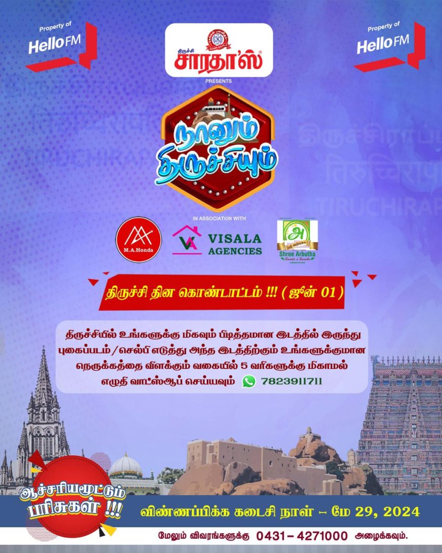 சொர்க்கமே என்றாலும் அது நம்மூரை போல வருமா.. அந்த அளவுக்கு திருச்சி நமக்கு ரொம்ப Special. June 01 அன்னைக்கு Trichy day, நமக்கு அரவணைப்பு, பாசம் கொடுத்த திருச்சிய இப்போ நம்ம கொண்டாட வேண்டிய நேரம் வந்தாச்சு. திருச்சில கண்டிப்பா உங்க மனசுக்கு நெருக்கமான இடம் இருக்கும்.