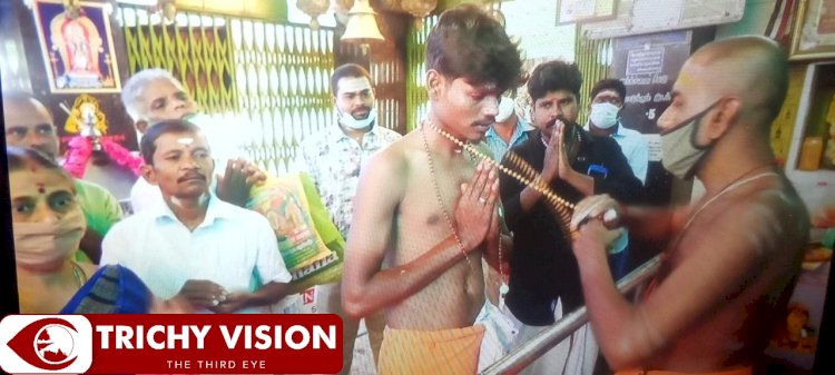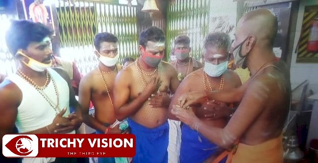 தற்போது திருச்சி கன்டோன்மென்ட் ஐயப்பன் கோவிலில் கொரோனா முன்னெச்சரிக்கை நடவடிக்கையுடன் பக்தர்கள் தரிசனம் செய்து வருகின்றனர். திருச்சியில் இன்று பல கோவில்களில் பக்தர்கள் தங்கள் குருசாமி உதவியுடன் சபரிமலைக்கு மாலை அணிவித்தனர். கொரோனா காரணமாக குறைந்த அளவு பக்தர்கள் மட்டுமே மாலை அணிவித்து வருகின்றனர்.