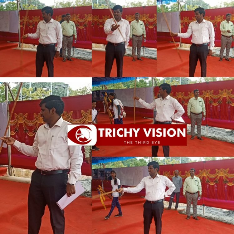 இந்நிகழ்ச்சியில் நகராட்சி நிர்வாக துறை அமைச்சர் நேரு மாவட்ட ஆட்சியர் பிரதீப் குமார் கலந்து கொண்டனர். முன்னதாக விழா நடைபெறும் பகுதிக்கு வந்த ஆட்சியர் பிரதீப் குமார் அங்கு சிலம்பம் சுழற்றும் பயிற்றுவிப்பவரிடமும் பேசிக் கொண்டிருந்தார்.