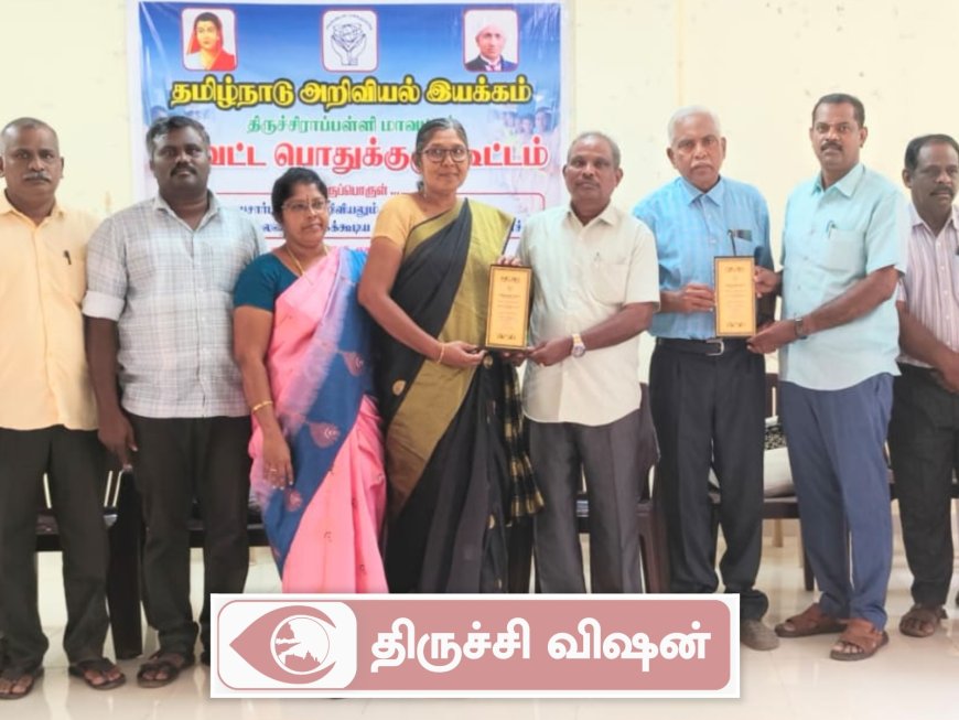 தமிழ்நாடு அறிவியல் இயக்கத்தின் திருச்சி மாவட்ட பொதுக்குழு கூட்டம் மாவட்டத் தலைவர் ஜான்சன் பிரான்சிஸ் தலைமையில் தந்தை பெரியார் அரசு கலை மற்றும் அறிவியல் கல்லூரியில் இன்று 16.02.2025 நடைபெற்றது. முதலில் மாவட்டத் துணைத் தலைவர் முனைவர்.மு.சலாஹூதீன் அனைவரையும் வரவேற்று பேசினார். காலை அமர்வில் கருத்தரங்கம் மற்றும் பாராட்டு நிகழ்வு நடைபெற்றது.