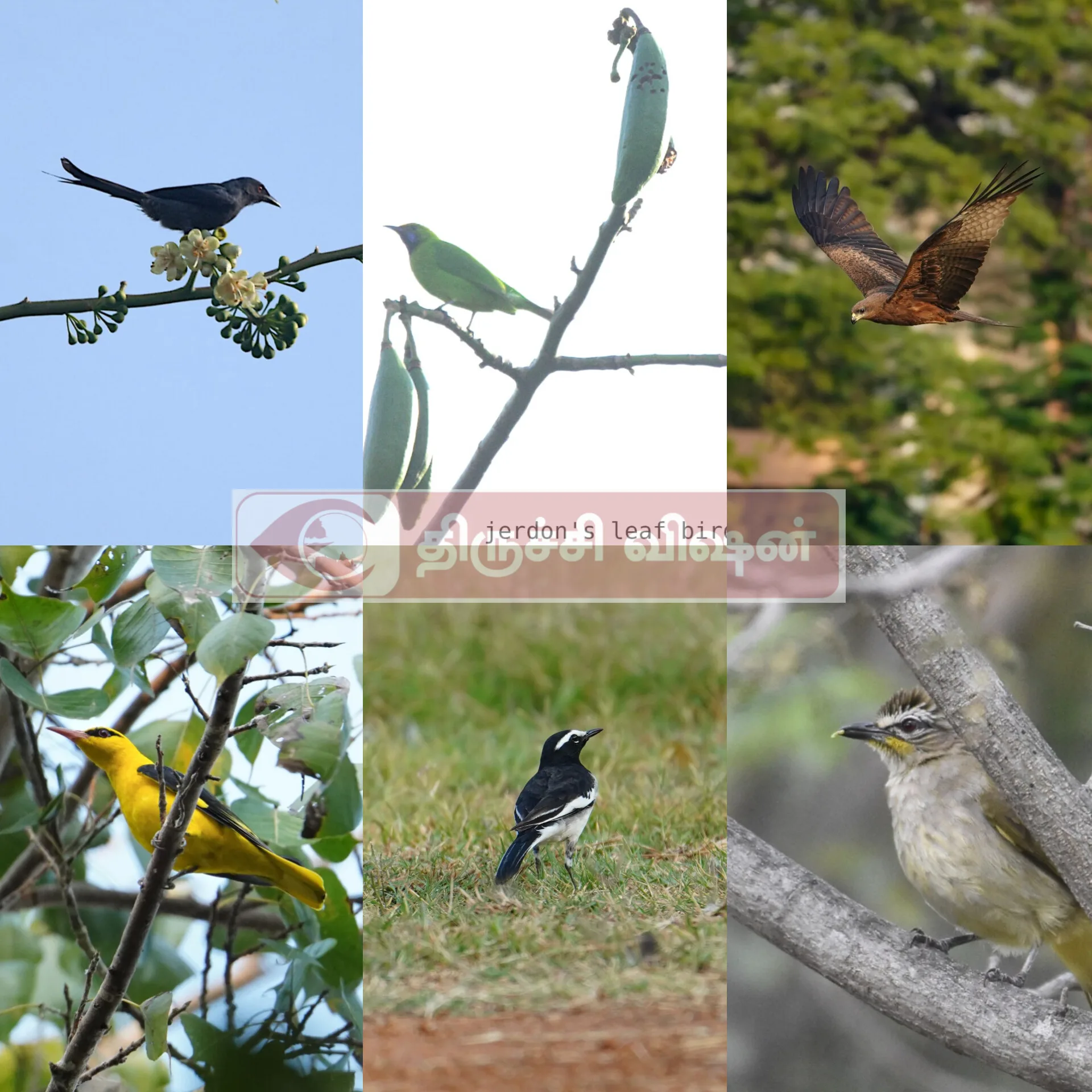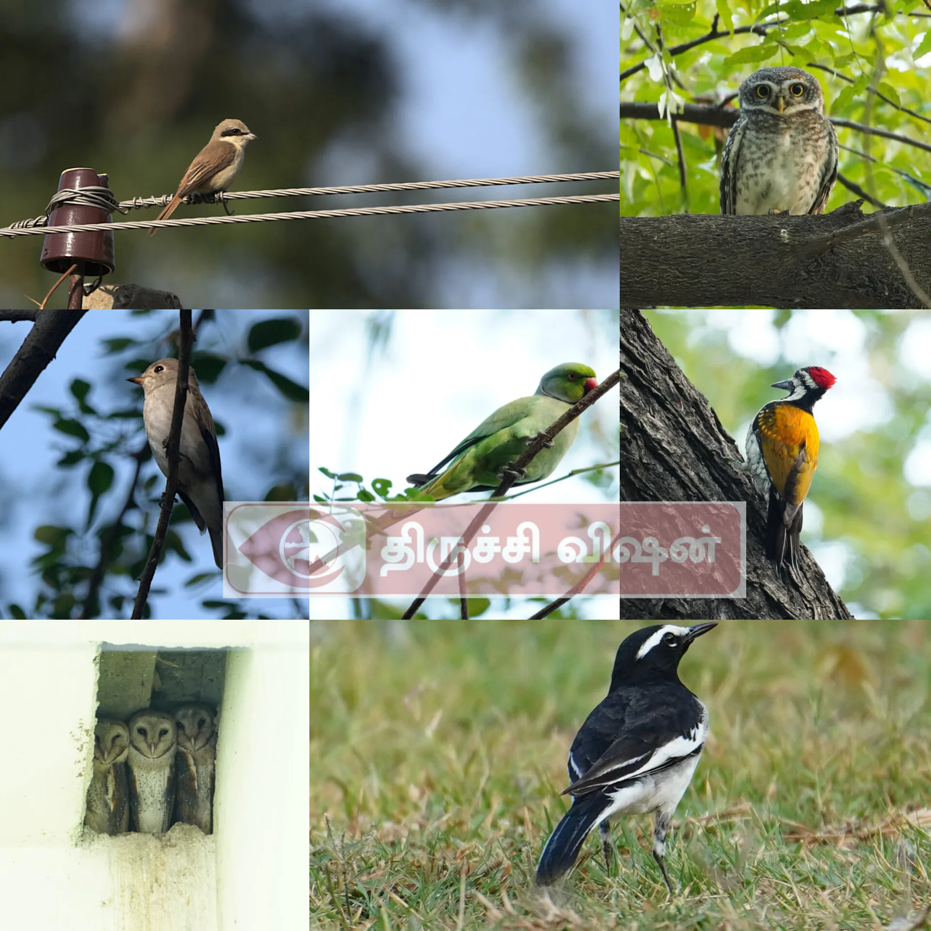 கண்ணூத்து காப்புக்காடு, தச்சமலை காப்புக்காடு, மரம ரெட்டிபாளையம் காப்புக்காடு, மேல் அணைக்கட்டு காப்புக்காடு, நேரு நினைவுக் கல்லூரி, காஞ்சேரிமலை டாக்டர் தோட்டம், திண்ணனூர், BHEL திருச்சி, பிஷப் ஹேபர் கல்லூரி மற்றும் இரட்டைமலை ஒன்டி கருப்பர் கோவில் ஆகிய நிலப் பகுதிகளில் பறவைகளின்
