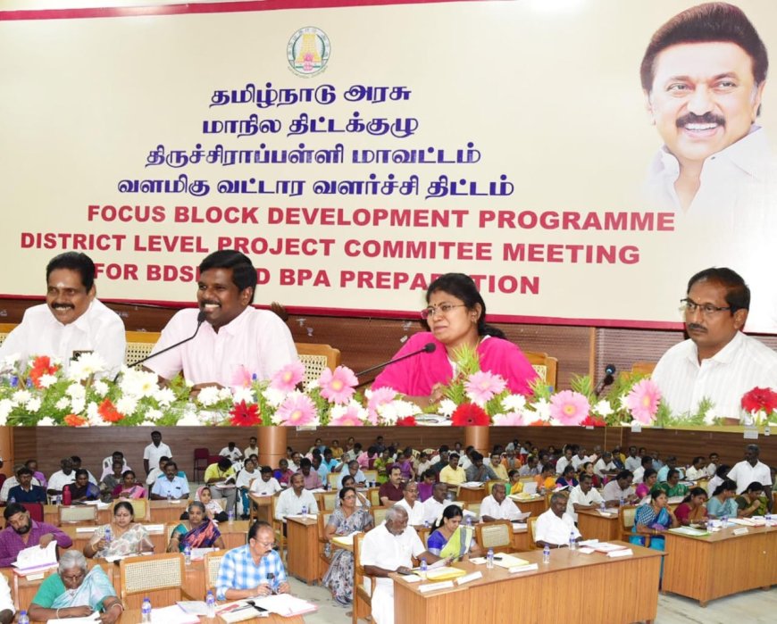 வளமிகு வட்டார வளர்ச்சி திட்டம், முன்னேற்றத்தை நாடும் வட்டார திட்டம் மற்றும் மகாத்மாகாந்தி தேசிய ஊரக வேலை உறுதித் திட்டம், பிரதம மந்திரி கிராம சாலைகள் திட்டம், தேசிய ஊரக குடிநீர் வழங்கும் திட்டம் (ஜல் ஜீவன் மிஷன்), முதல்வரின் கிராம சாலைகள் மேம்பாட்டுத் திட்டம், சட்டமன்ற உறுப்பினரின் தொகுதி மேம்பாட்டுத் திட்டம், மேலும், திருச்சி மாவட்டத்தில் பல்வேறு திட்டங்கள் மூலம் மேற்கொள்ளப்பட்டு வரும் பல்வேறு வளர்ச்சித் திட்டப் பணிகள் குறித்தும், முடிவுற்ற பணிகள் குறித்தும், நிலுவையில் உள்ள பணிகள் குறித்தும், பணிகள் நிலுவையில் உள்ளதற்கான காரணங்கள் குறித்தும், விரிவாக ஆய்வு மேற்கொள்ளப்பட்டது.
