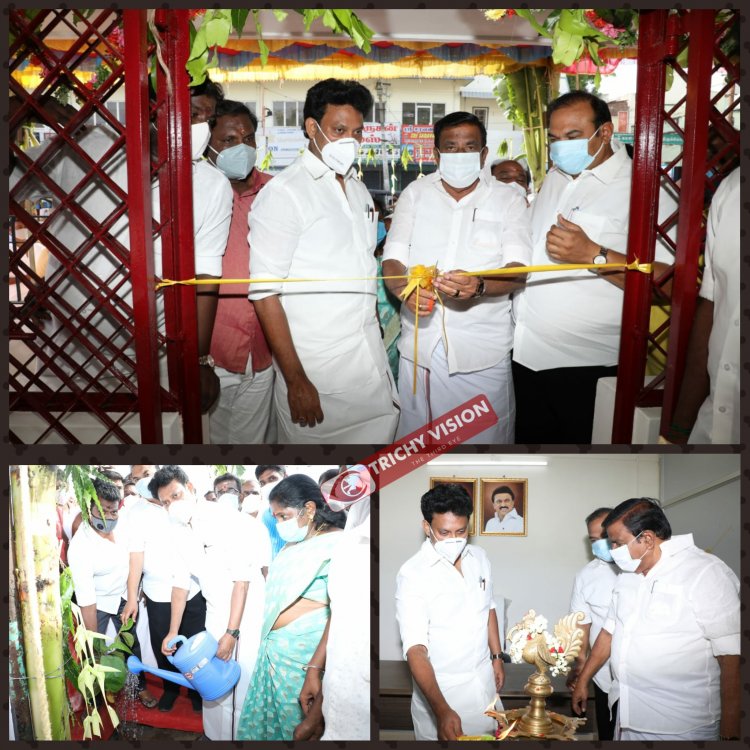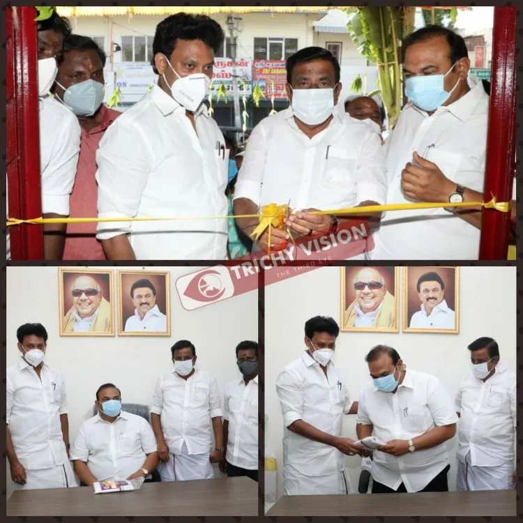 திருச்சி மெயின்கார்டு கேட் காமராஜர் விளைவு அருகில் அமைந்துள்ள கிழக்கு சட்டமன்ற தொகுதி அலுவலக திறப்பு விழா காணப்பட்டது. கிழக்கு தொகுதி சட்டமன்ற உறுப்பினர் இனிகோ இருதயராஜ் முன்னிலையில் பள்ளிக்கல்வித்துறை அமைச்சர் அன்பில் மகேஷ் பொய்யாமொழி தலைமையில்