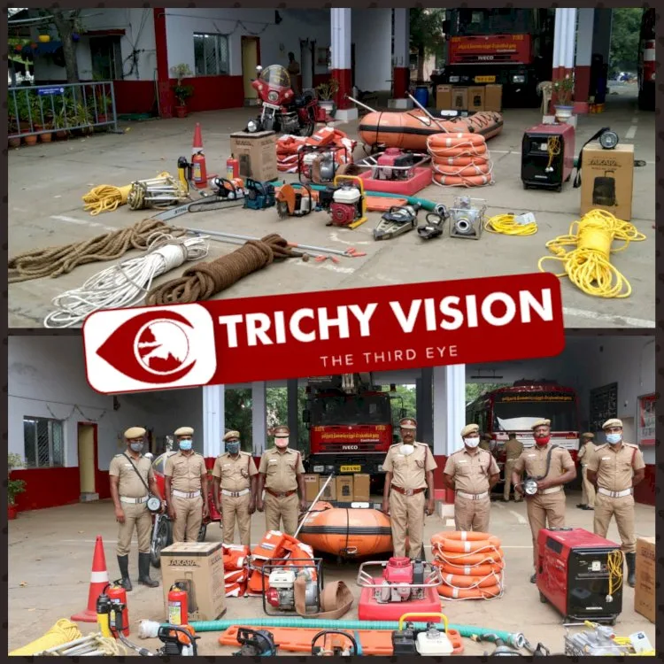 மின்கம்பங்களை அகற்ற கட்டர், கம்பிகள் வெட்டக் கூடிய கருவிகளும் கான்கிரீட் கட்டர், அயன் கட்டர், ஹைட்ராலிக் ஜாக்கி,ஏர் லிப்டிங் பேக் உள்ளிட்ட உபகரணங்கள் மீட்புப் பணிகளில் ஈடுபட தயாராக இருப்பதாக திருச்சி தீயணைப்பு துறை நிலைய அலுவலர் மெல்கிராஜ் தெரிவித்துள்ளார்.